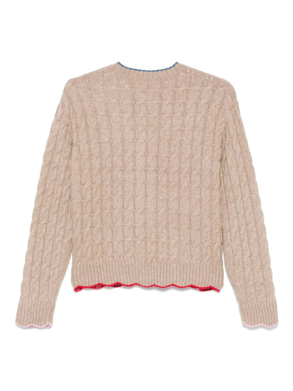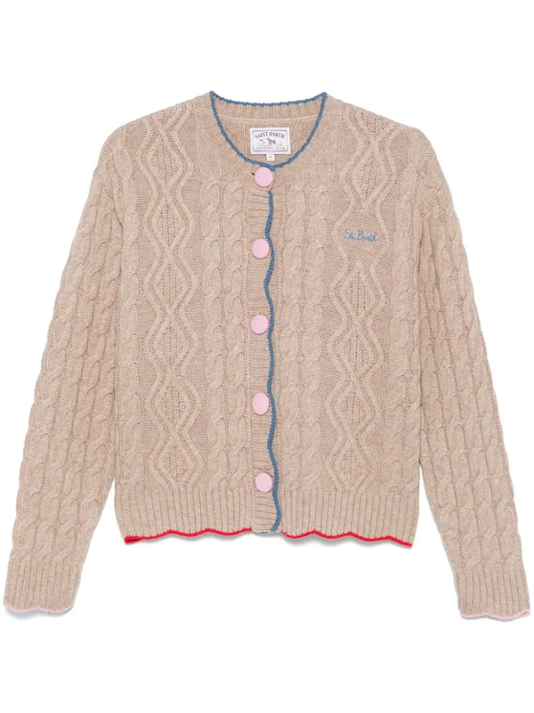 Cardigan per donna MC2 Saint Barth Mallery beige con lavorazione a trecce