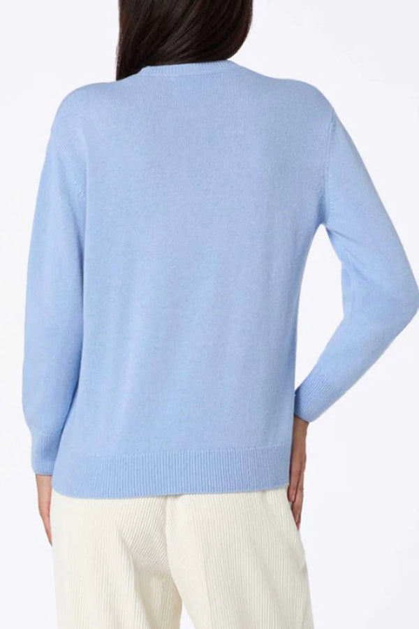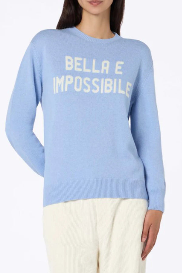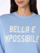 Maglione da donna azzurro New Queen con stampa Bella e Impossibile
