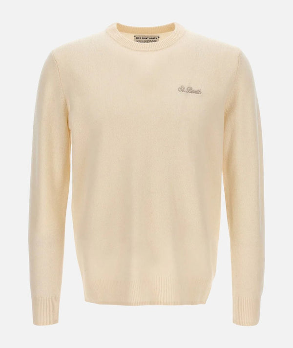 Maglione girocollo in misto cashmere beige da uomo Regent