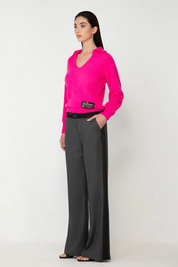 Pantaloni a gamba larga presentano una coulisse in vita, tasche laterali a fessura e banda a contrasto laterale. Renderà il look giornaliero cool!