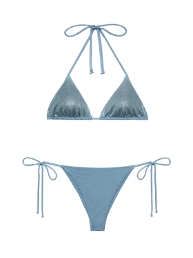 Bikini azzurro classico a triangolo Leah Marielle con decorazione a righe in strass