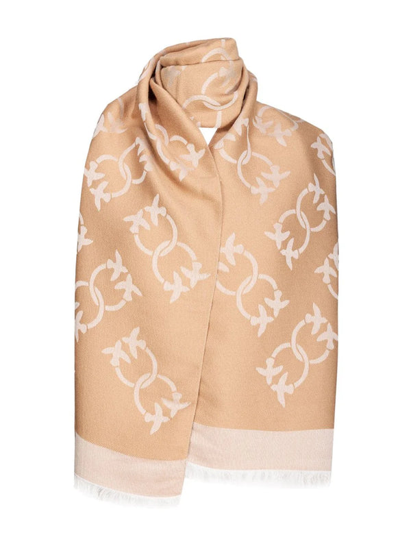 La sciarpa con motivo Acronis Love Birds di Pinko è un accessorio elegante e versatile, perfetto per aggiungere un tocco di stile al tuo outfit. Realizzata in maglia fine di acrilico al 100%, questa sciarpa offre una sensazione morbida e confortevole. Il design rettangolare in marrone cammello e beige chiaro è arricchito dal caratteristico dettaglio Love Birds, simbolo distintivo del brand. L'orlo sfrangiato aggiunge un tocco di eleganza informale, rendendo questa sciarpa ideale per diverse occasioni.