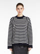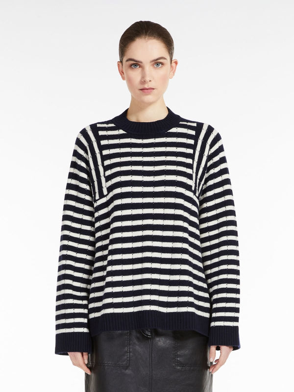 Maglia in filato di lana con lavorazione a punto rasato linea over spacchi ai fianchi 100%lana vergine, Colore Blu, Taglia s