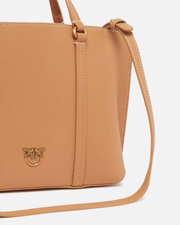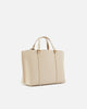 Borsa shopper large in pelle bottalata accoppiata. Doppio set di manici, di due dimensioni differenti, personalizzati con charm logato.