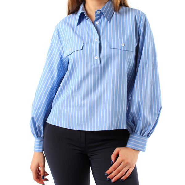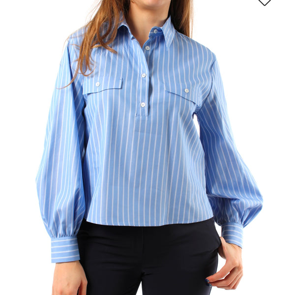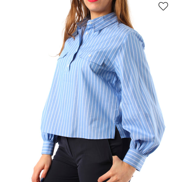 Un capo versatile che unisce l'eleganza classica delle righe al design contemporaneo delle maniche a palloncino. La camicia Etna rappresenta un perfetto equilibrio tra stile e praticità, adatta a diverse occasioni. Realizzata in popeline di cotone, questa camicia presenta un fit morbido che si adatta a ogni silhouette, regalando comfort e stile. Il collo a polo con bottoni a vista e le taschine con patta sul petto aggiungono dettagli sofisticati, mentre le maniche a palloncino e i polsi con arricciature donano un tocco femminile e moderno. Gli spacchetti laterali garantiscono libertà di movimento e un look fresco.