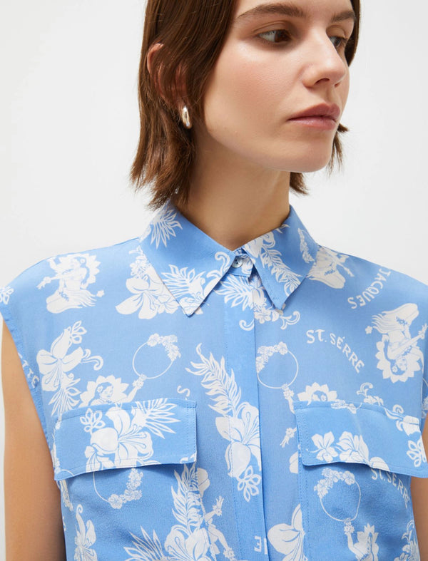 Leggera e super cool, con giocosa ispirazione anni Ottanta, la camicia in crêpe stampata si annoda in vita e crea una silhouette moderna. Abbinala a pantaloni in tinta per uno stile cittadino rilassato.