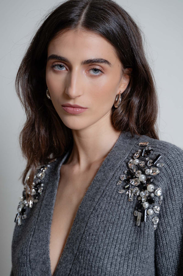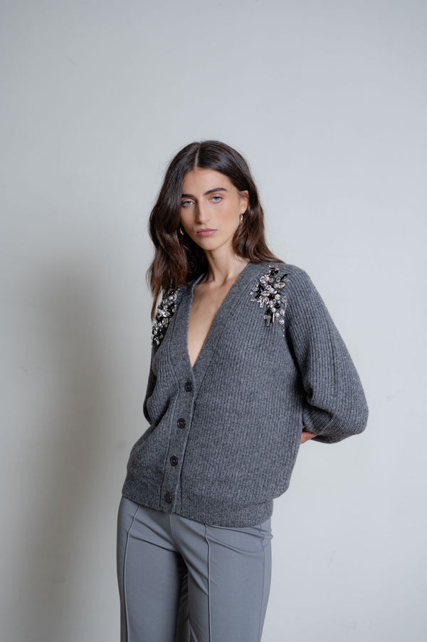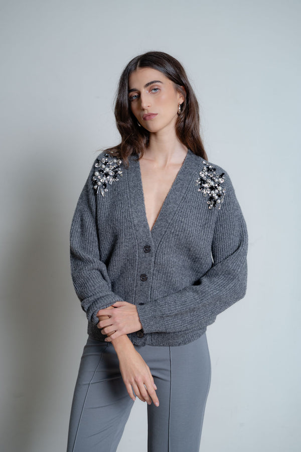 CARDIGAN IN MAGLIA CON RICAMO CON BOTTONI PERLA