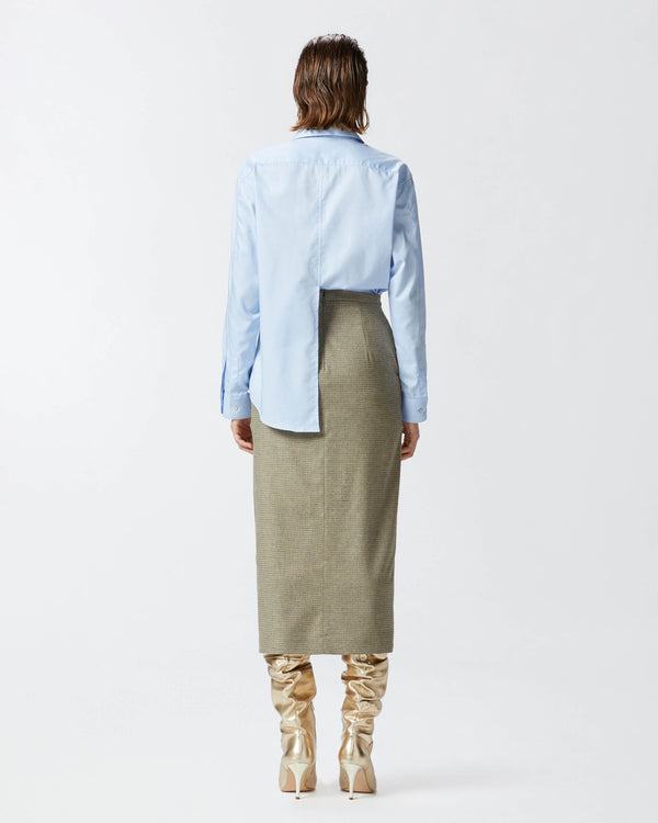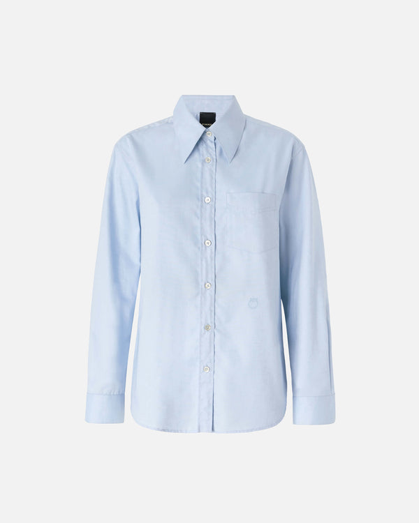 Camicia da donna in tessuto Oxford di puro cotone nella classica tonalità azzurra. Un vero capo timeless, la camicia è caratterizzata da colletto classico a punta, taschino applicato e ricamo logo Love Birds davanti. Lo spacco centrale al fondo sul retro e la chiusura con piccoli bottoni davanti completano uno stile versatile e adatto ai look di tutti i giorni, dal più formale al più elegante.