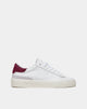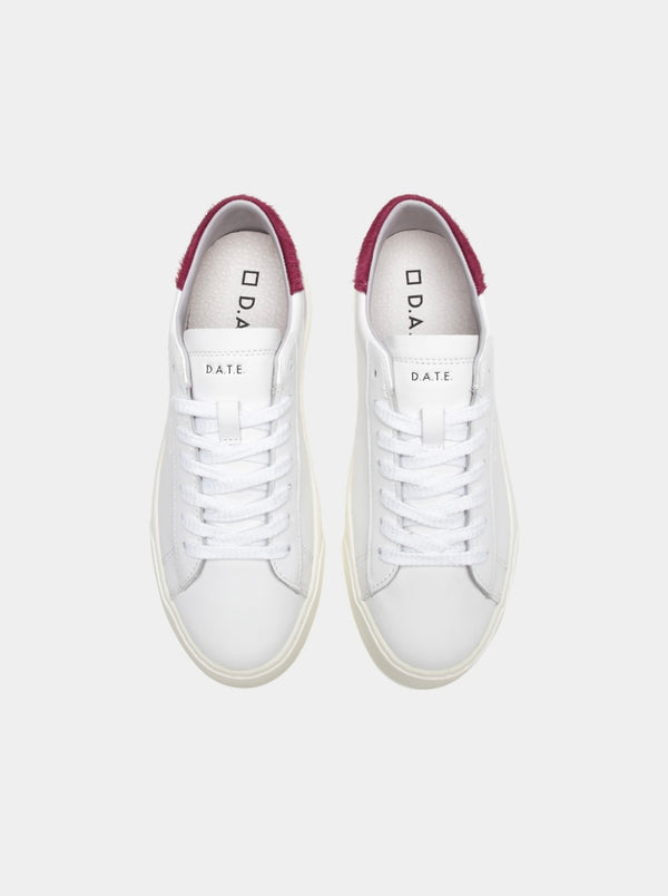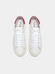 Sneakers Sonica di D.A.T.E., realizzate in morbida pelle di colore bianco, con inserti di camoscio in nuance. Dettaglio tallone in vacchetta di colore prugna . Interno in morbida spugna di cotone. Applicazione del marchio impresso a caldo sul lato esterno. Morbidi lacci di cotone bianco. Plantare in pelle estraibile di 2 centimetri. Fondo a cassetta di gomma di colore bianco.
