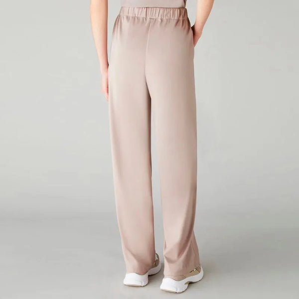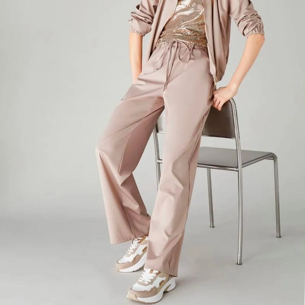 Easy and chic, i pantaloni in jersey stretch offrono uno stile rilassato ma femminile, perfetto per i momenti più casual. Il volume ampio sulla gamba e la coulisse offrono tutto il comfort di cui hai bisogno