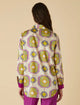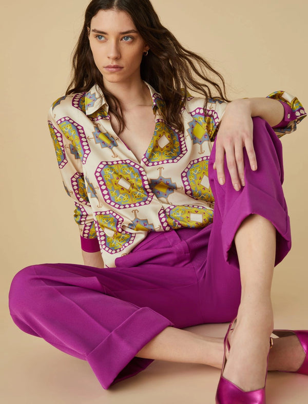 Giacca-camicia imbottita trapuntata, linea dritta. Collo a camicia in velluto, maniche lunghe con polsino in velluto. Chiusura con automatici, tasche applicate.
