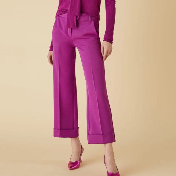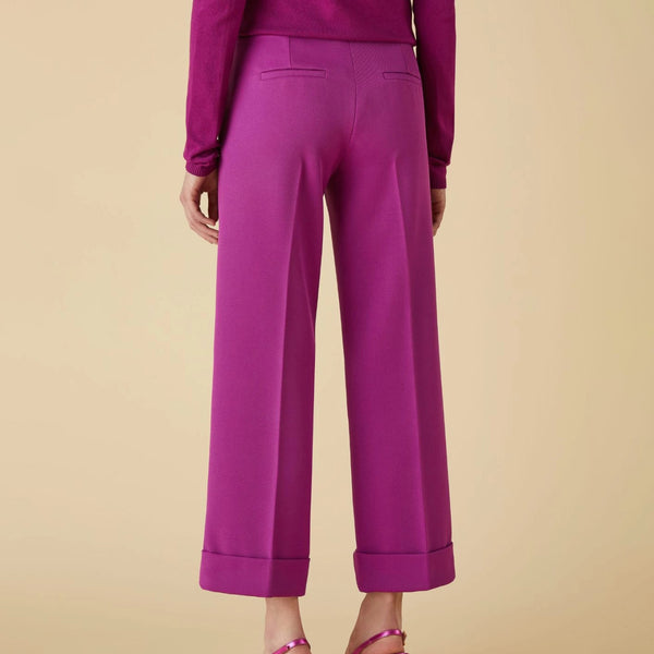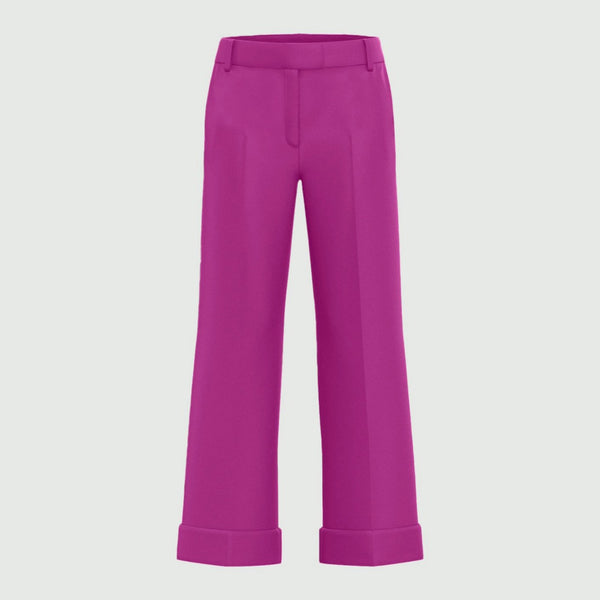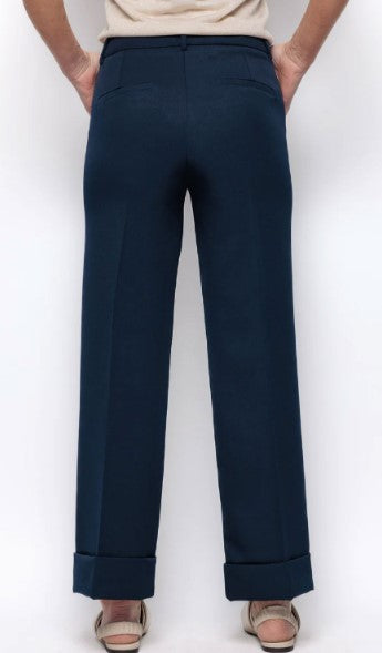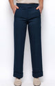 Pantaloni dritti in tessuto tecnico con fondo gamba risvoltato. Chiusura con gancetto e zip nascosti, oltre a tasche alla francese davanti ea filetto dietro. Dettaglio piega stirata davanti e dietro