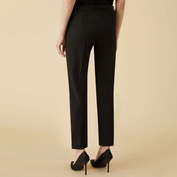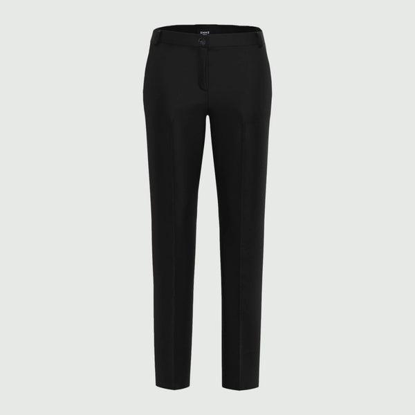 Pantaloni chino in gabardine stretch. Chiusura con zip coperta da patta e bottone, oltre a tasche oblique. Dettaglio piega stirata davanti e dietro.