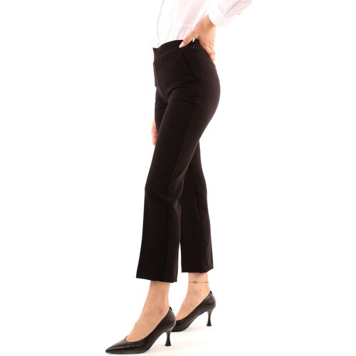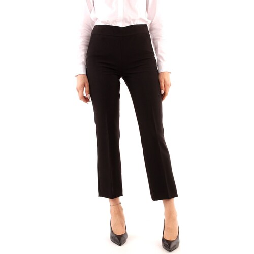 Pantaloni bootcut cropped in materiale elasticizzato. Chiusura con zip coperta da patta e gancetto, oltre a tasche anteriori arrotondate e tasche posteriori a toppa. Dettaglio piega stirata davanti e dietro
