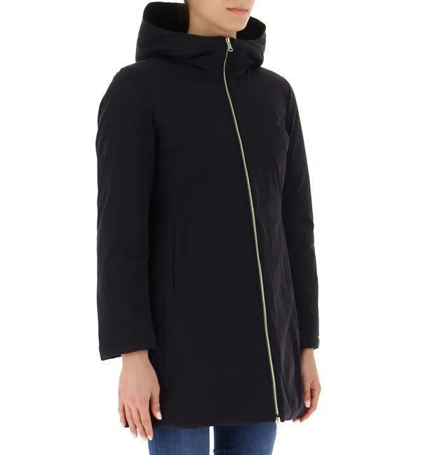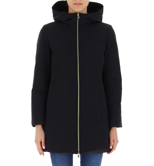 Cappotto dritto in pura lana. Collo a revers e maniche lunghe. Chiusura asimmetrica con bottone aperto, tasche sul fianco. Spacco centrale sul retro. Modello foderato. Cintura abbinata.