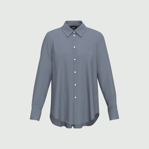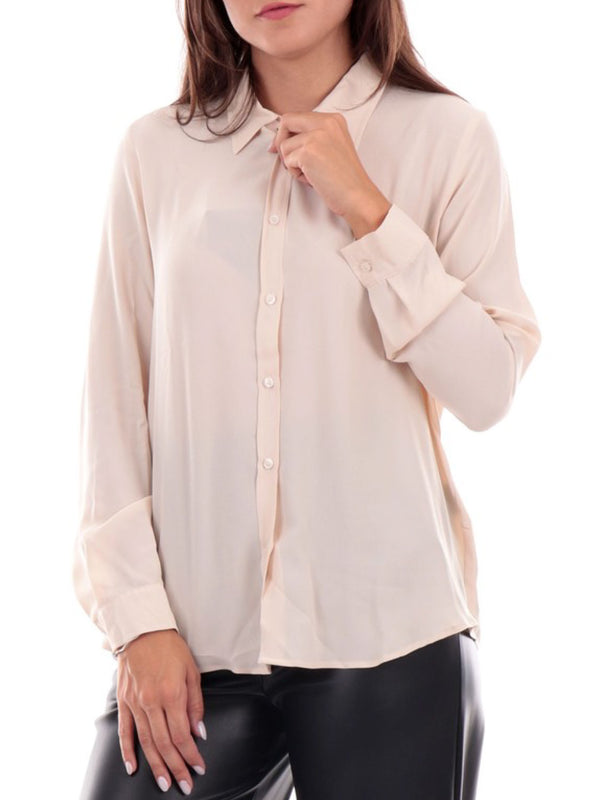 Camicia morbida in crepe de chine. Collo a camicia e maniche lunghe con risvolto. Chiusura con bottoni a vista. Orlo alto-basso