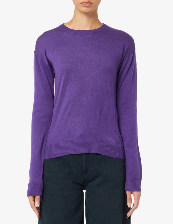 Maglione in misto viscosa dal taglio dritto e morbido. Scollo tondo e maniche lunghe raglan