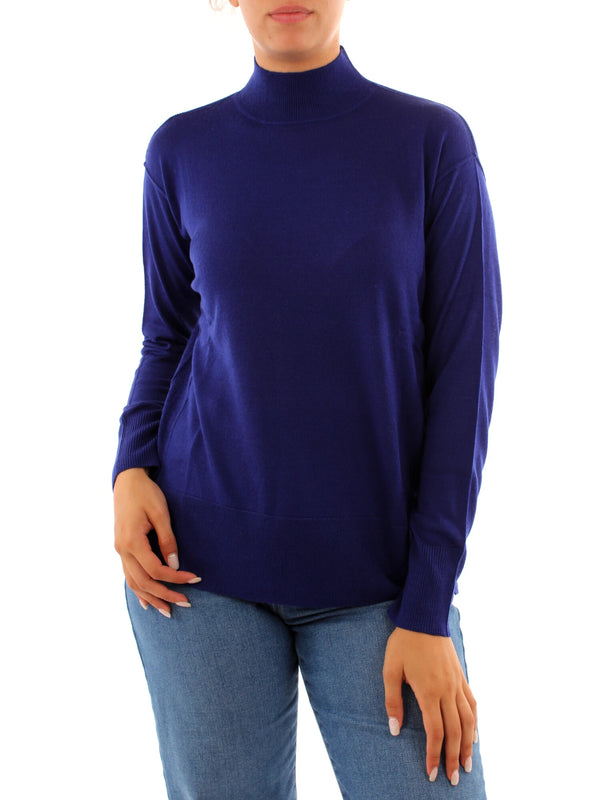 Maglia da donna della collezione Emme Marella, dalla linea dritta. Collo alto, spacchi laterali sul fondo e maniche lunghe. Indossala per donare stile e personalità al tuo look.