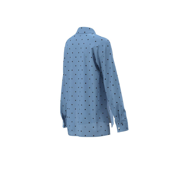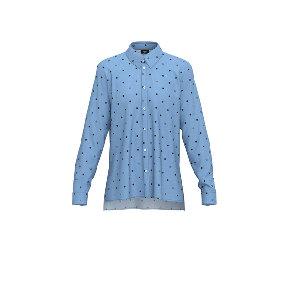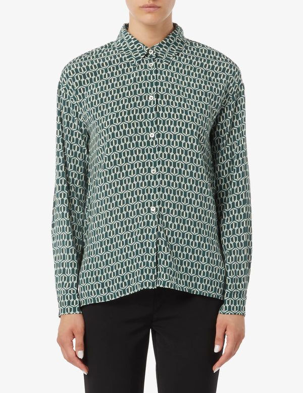 Camicia in viscosa a fantasia, linea dritta. Collo a camicia, maniche lunghe con giro sceso e polsino. Chiusura con bottoni, spacchi laterali. Più lunga sul retro. Lunghezza 68 cm