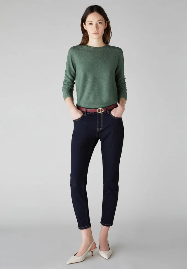 Minimo sforzo, massimo impatto: maglia girocollo in misto lana, impreziosita da fili di lurex iridescenti. Con i jeans per un look daywear o una gonna midi after dark: mai senza!