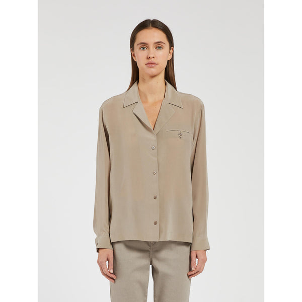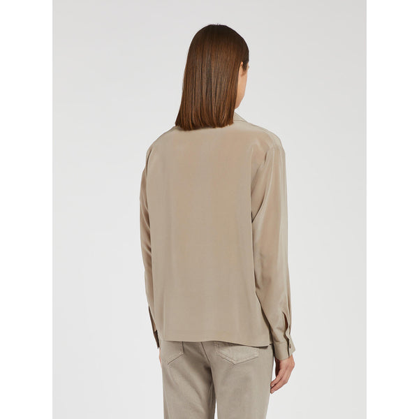 Camica in crêpe de Chine di seta. È parte della collezione Marella MONOCHROME: silhouettes monocolore, in materiali selezionati, e layering impeccabili per outfit luxury.