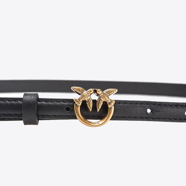 Cintura sottile in pelle con mini fibbia Love Birds Diamond Cut in metallo, galvanica oro antico oppure argento antico.