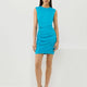 Abito corto aderente in tessuto di raso stretch con dettaglio di arricciatura laterale. Modello girocollo senza maniche. Chiusura con zip nascosta sul retro. Modello foderato. Il tessuto contiene materie prime derivate dalla cellulosa del legno; una fibra ottenuta in modo sostenibile rispetto alle risorse forestali.