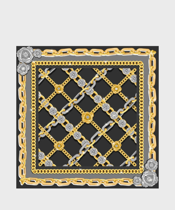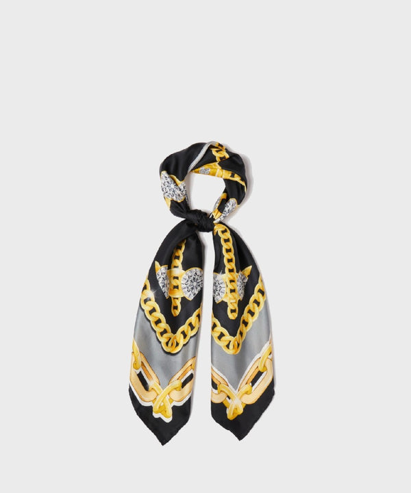 Marella Neo foulard in twill di seta con stampa bijoux, nero e oro