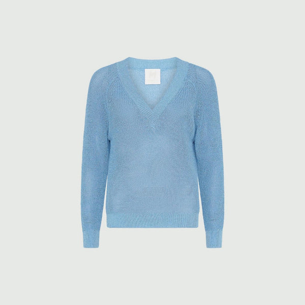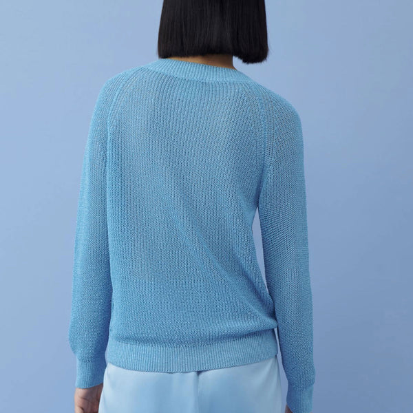Maglia dritta in misto cotone e tessuto lurex. Scollo a V e maniche lunghe raglan. Parte della collezione Marella MONOCHROME: silhouette monocromatiche in materiali selezionati e impeccabili styling a strati per outfit di lusso.