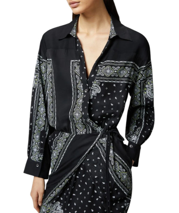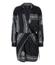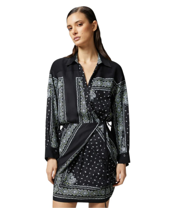 Effetto portafoglio, con camicia e gonna incrociati sul davanti, chiusi da un laccetto laterale