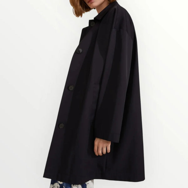 Impermeabile in gabardina antigoccia di misto cotone a fit oversize, Spalle scese e spacco centrale posteriore con tasche laterali a filetto.