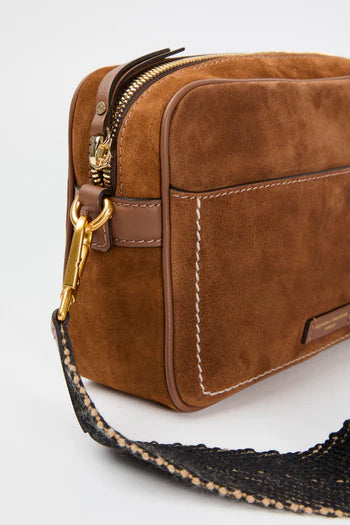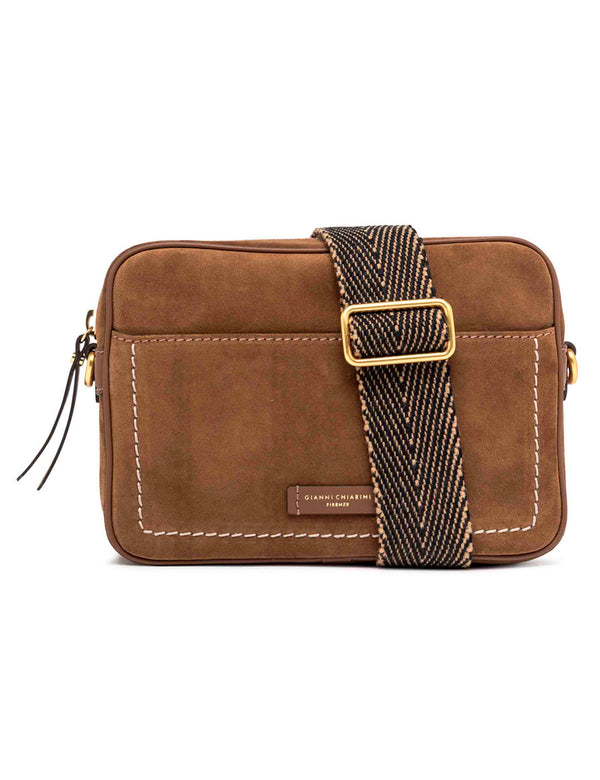 La Nina by Gianni Chiarini Firenze è una comoda borsa a tracolla in camoscio con profili in pelle, caratterizzata da una shape squadrata. Presenta uno scomparto principale con chiusura zip e una pratica tasca piatta sul fronte. Può essere indossata anche come crossbody grazie alla tracolla aggiuntiva in tessuto intrecciato. Dimensioni: 25x19x8 cm.