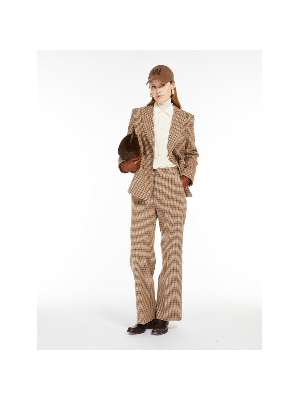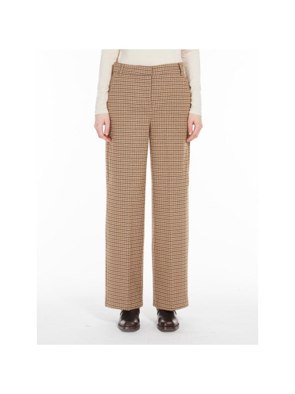 Pantalone cropped alla caviglia, realizzato in morbido jersey di flanella con disegno jacquard. Il modello è caratterizzato da una vestibilità regolare con gamba dritta, tasche alla francese sui fianchi e pinces in vita sul retro. Chiusura con listino alto in vita, zip con patta e bottone.