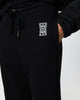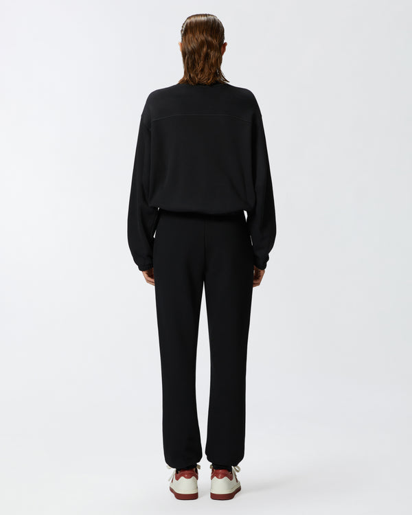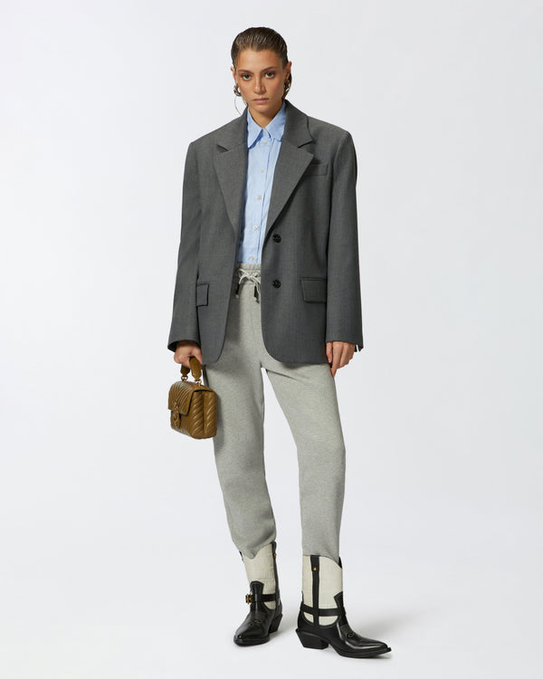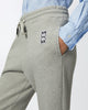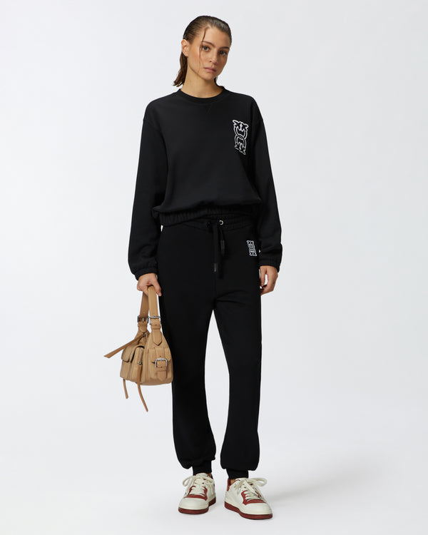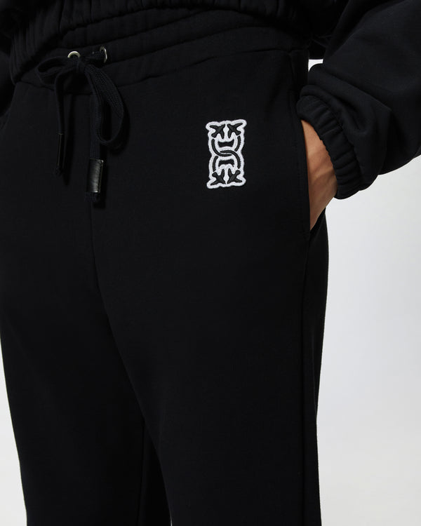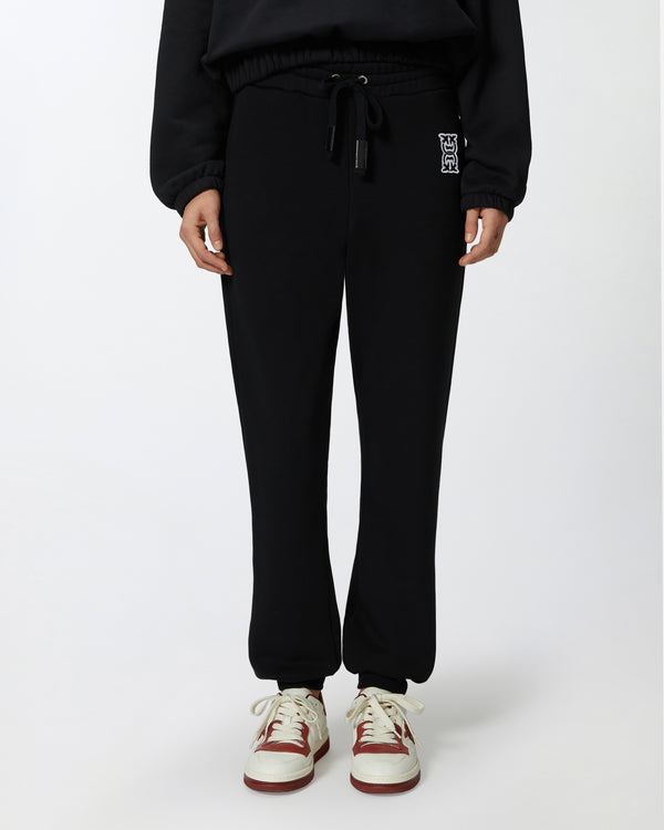 Pantaloni joggers da donna stile sportivo in felpa di cotone, personalizzati con patch Love Birds Monogram laterale davanti. Linea morbida, vita con elastico e coulisse regolabile, con finalini in metallo, tasche inserite sui fianchi e polsino elastico a fondo gamba.
