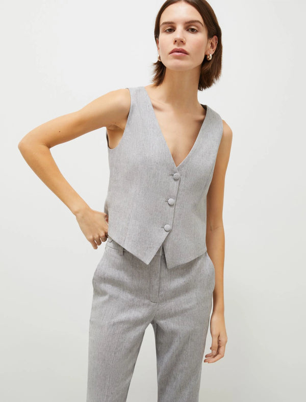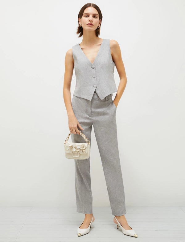 - Gilet in tessuto fluido diagonale di viscosa, lino e cotone