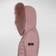 Piumino in tessuto tecnico leggero, polveroso al tatto per la temperatura di tintura e idrorepellente. Il capo è impreziosito da un bordo staccabile in pelliccia di volpe a contorno del cappuccio a collo alto. La vestibilità asciutta, sottolineata dalla coulisse posteriore in vita e dall'alternanza di trapuntate più e meno sottili, valorizza la silhouette e dona una connotazione femminile al capo. Chiusura con zip assimetrica a doppio cursore, tasche con zip, inserti elastici antivento ai polsi. Un capo facile da abbinare a look diversi, al passo con uno stile di vita dinamico!