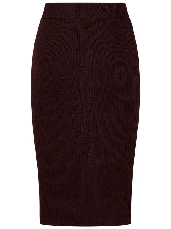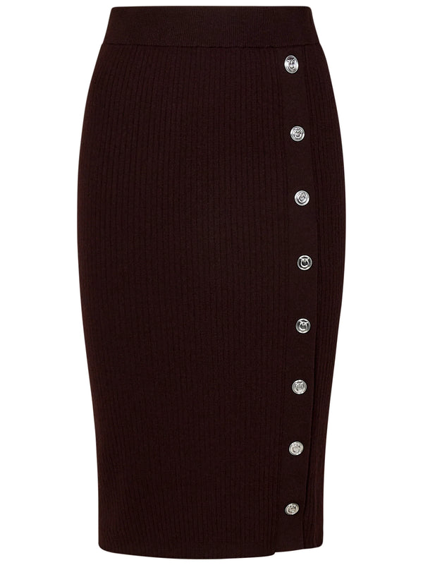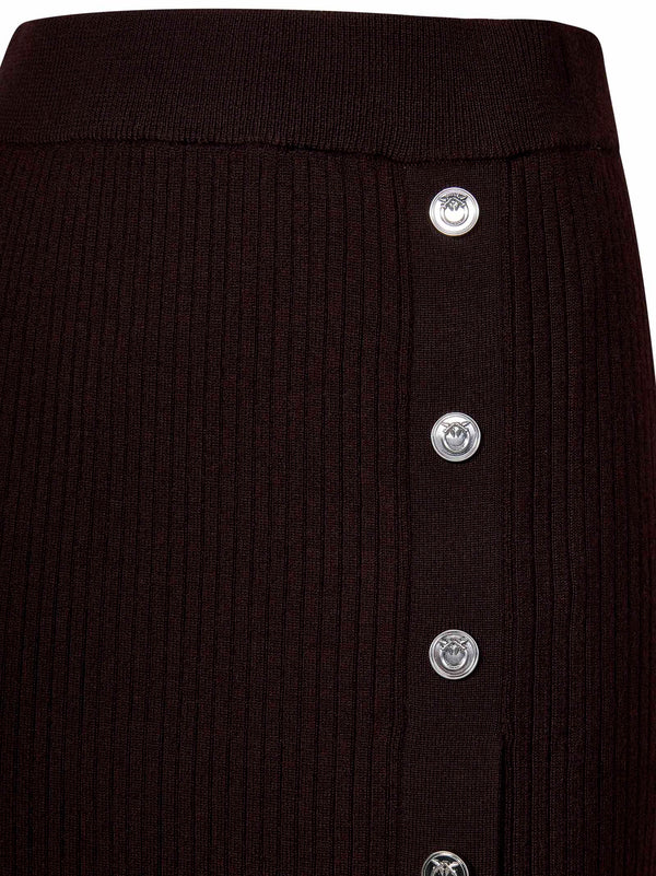 Gonna al ginocchio Refrigerazione in lana marrone stretch a costine con bottoni logo argento laterali.