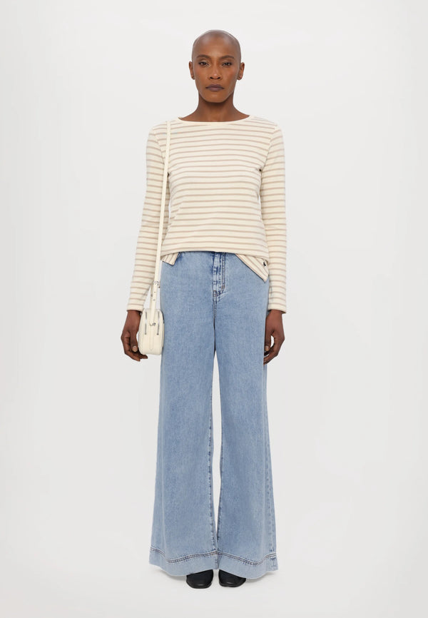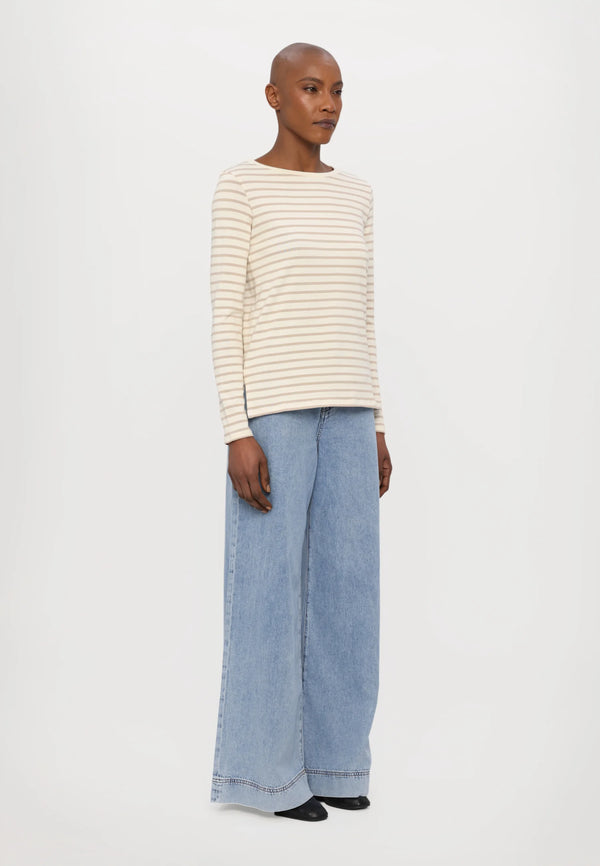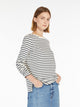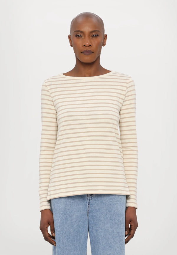 T-shirt a maniche lunghe, realizzata in morbido jersey di cotone organico a righe. Modello dalla linea dritta, caratterizzato da scollo a barchetta, maniche lunghe e spacchi ai fianchi. Il tessuto principale di questo capo contiene almeno il 50% di fibra di cotone coltivata secondo i principi dell'agricoltura biologica.