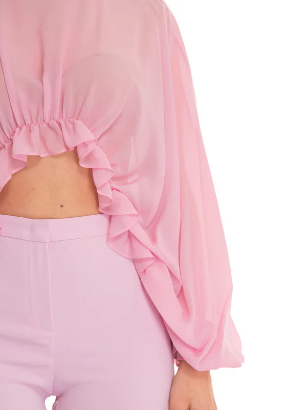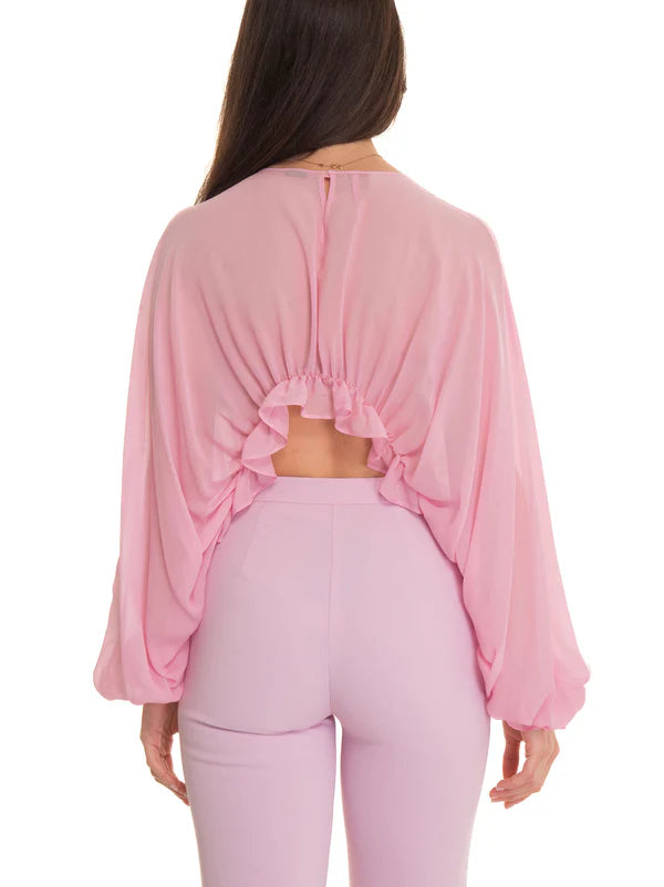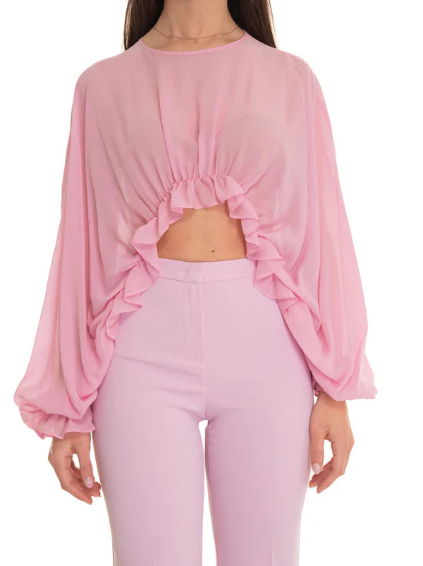 Scoprite l'incanto e la leggerezza del nostro top coprispalle, un accessorio indispensabile per ogni guardaroba. Realizzato in chiffon leggero e arioso, questo coprispalle è l'ideale per aggiungere un tocco di eleganza a qualsiasi outfit. Il design include uno scollo tondo e maniche lunghe, perfetti per creare un look sofisticato.