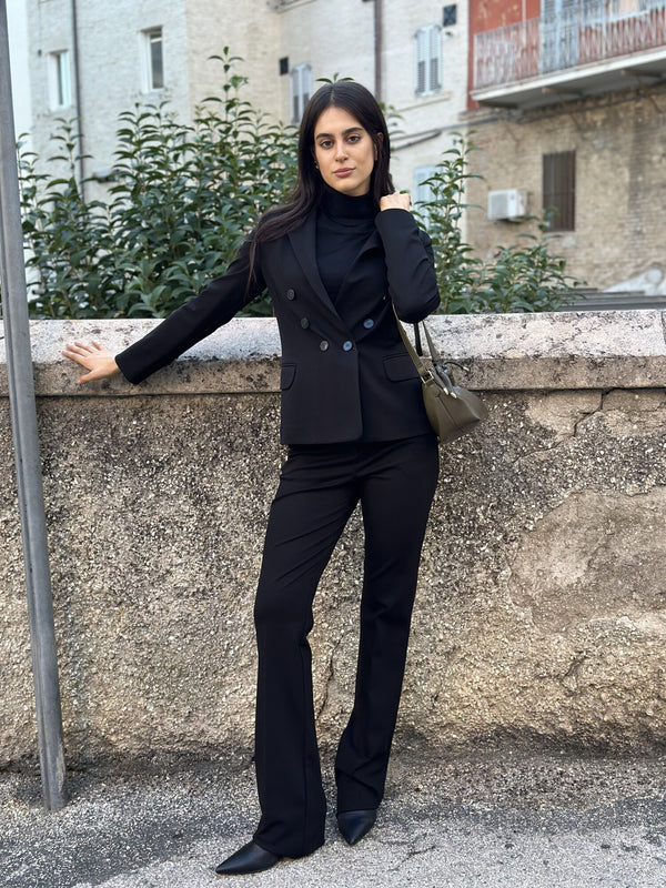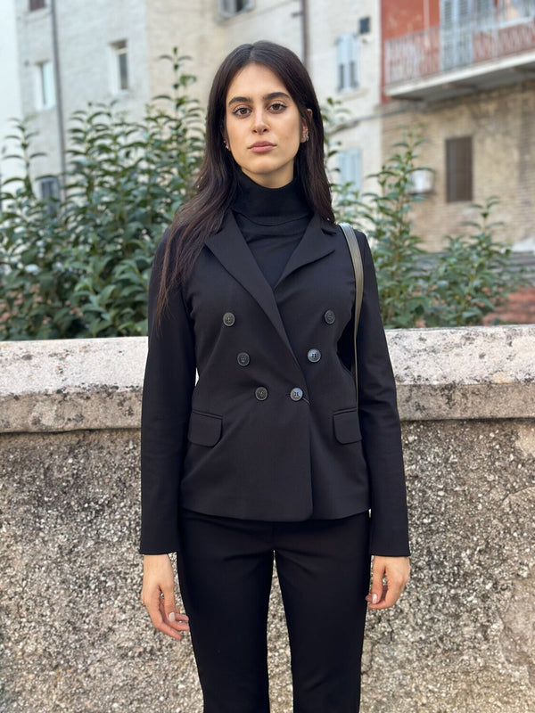GIACCA Mix perfetto di androgino e femminile, il blazer doppiopetto non è mai scontato. In jersey stretch per disegnare le forme senza costringere i movimenti, sarà il punto fermo del tuo guardaroba nelle stagioni a venire.