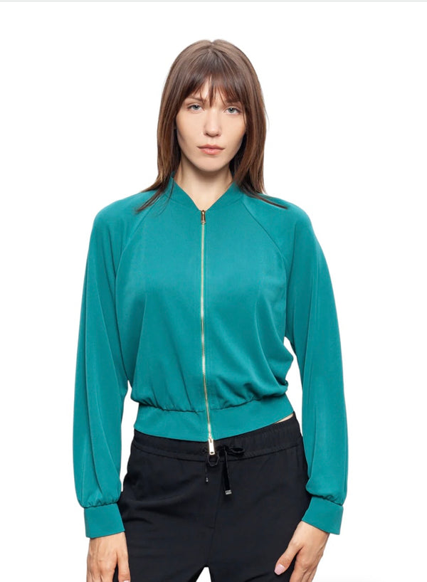 Il design si caratterizza per il suo sottile tocco sportivo: uno scollo rotondo e una chiusura frontale con zip. Le maniche lunghe raglan aggiungono un ulteriore dettaglio di stile, mentre la composizione in 95% poliestere e 5% elastan garantisce durata e flessibilità.