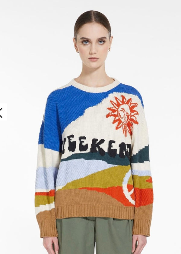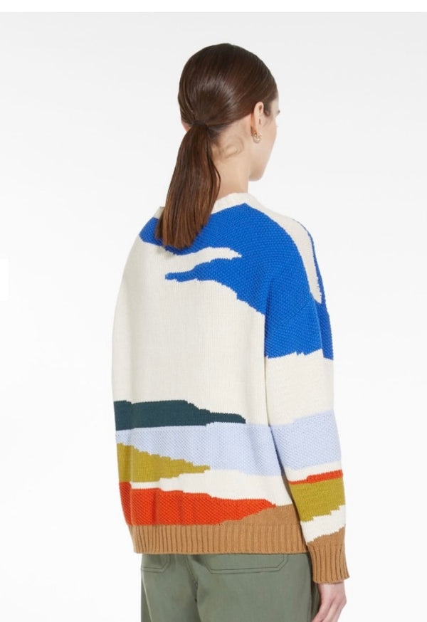 Realizzato in morbido filato di cotone, offre una vestibilità comoda e oversize con maniche lunghe e spalle scese. La caratteristica accattivante è il motivo a blocchi di colore incorporato, che conferisce al design un tocco moderno. Rifinito con finiture a coste per un look lucido.