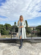 Una delicata tinta pastello addolcisce l'impeccabile taglio sartoriale di questo cappotto monopetto a vestaglia in double.