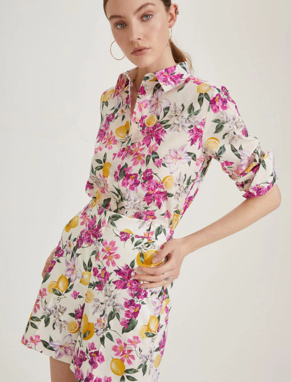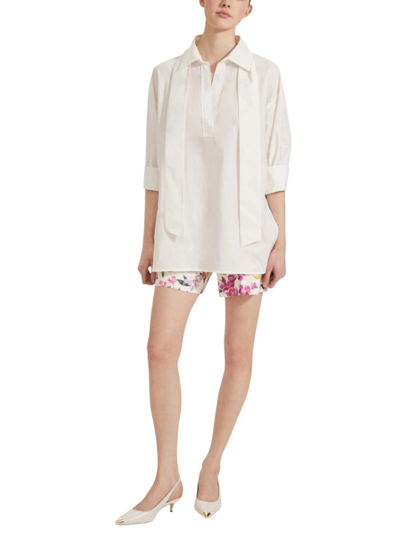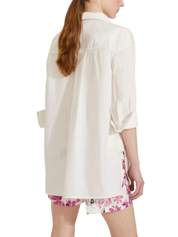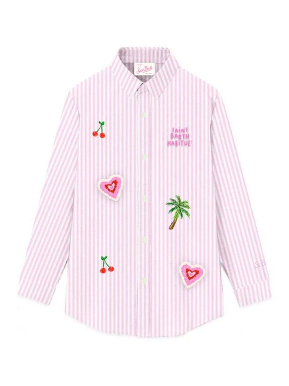 Camicia classica in popeline di cotone Meredith con decorazione rigata in strass