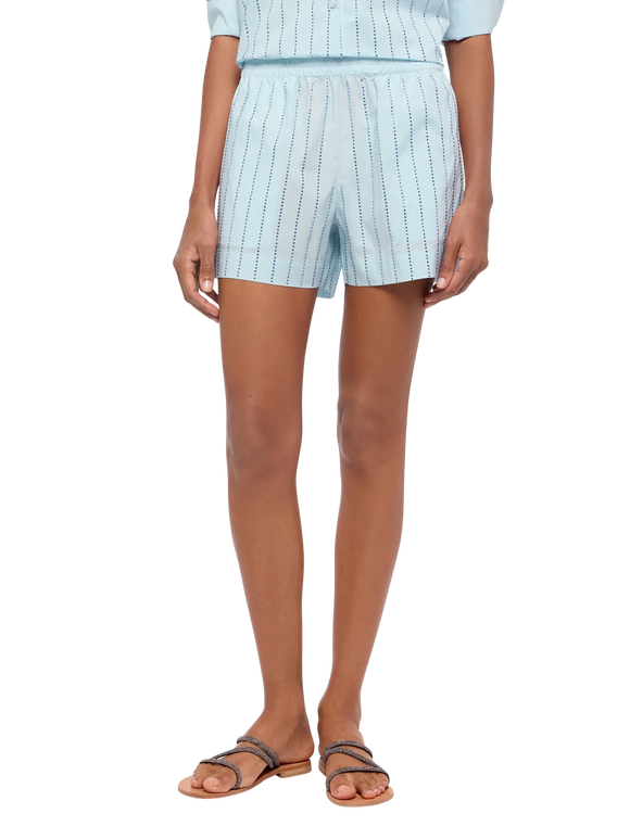 Meave shorts pull up in popeline di cotone con decorazione in strass a righe