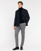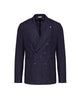 Giacca sfoderato doppiopetto in jersey, chiusura sei bottoni, ampio rever a lancia, due tasche a toppa e un taschino frontali, due spacchi sul retro, quattro bottoni ai polsi, finiture con impunture A.M.F. Regimental in jersey misto lana