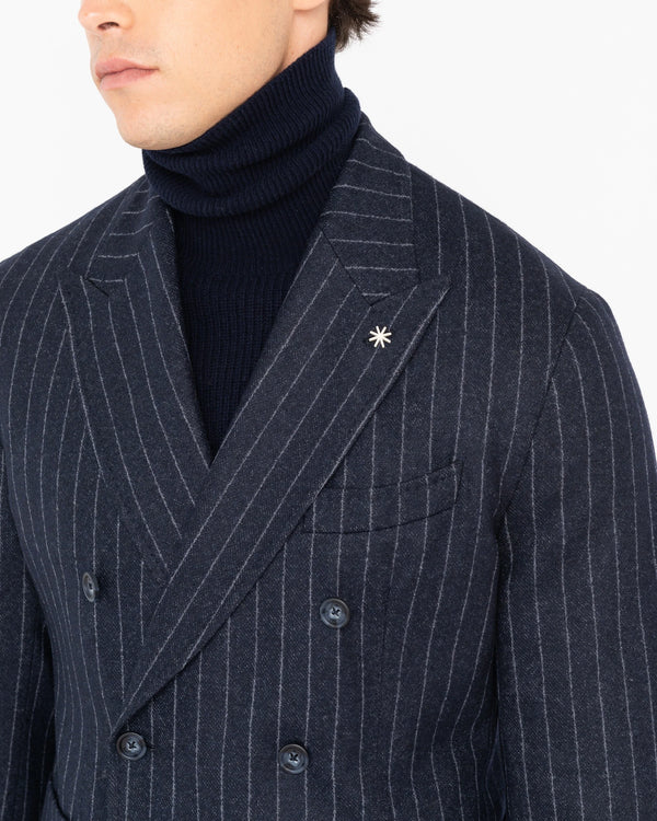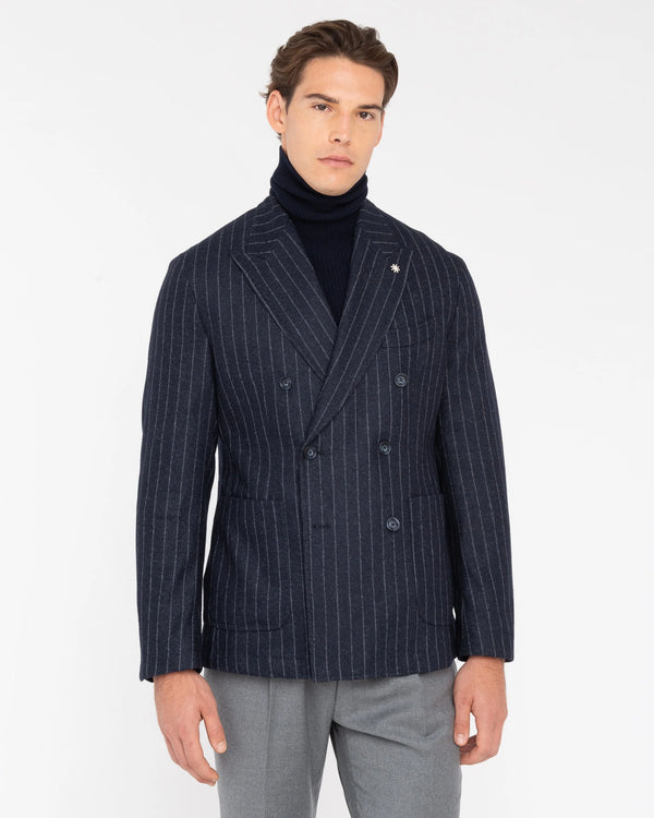 giacca doppiopetto regimental jersey blu Manuel Ritz