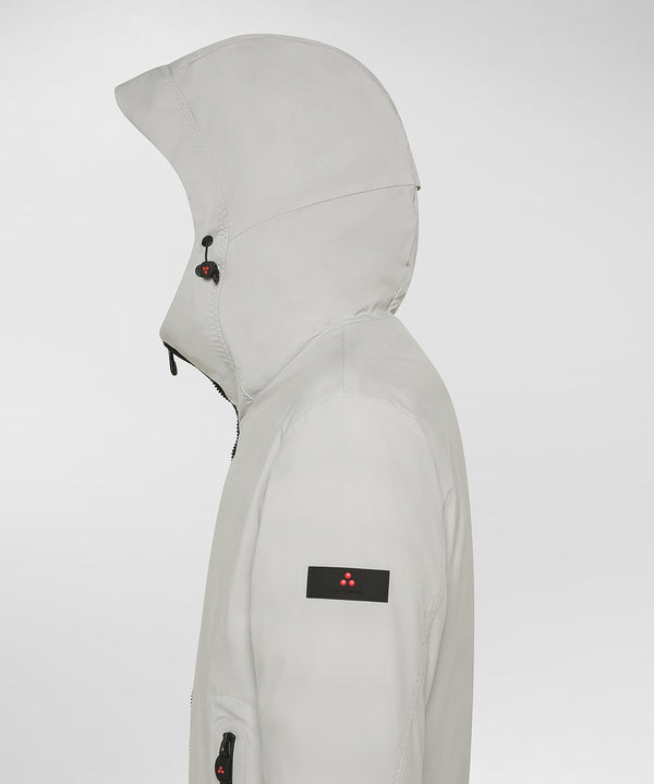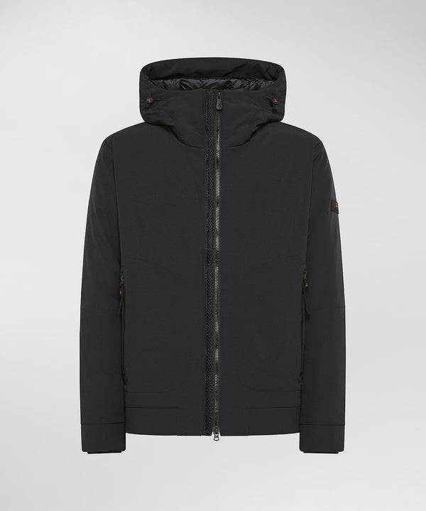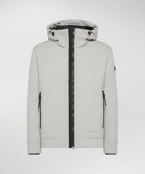 Giacca corta realizzata in tela di poliestere stretch accoppiata con un jersey di poliestere soffice e caldo, grazie alla finezza dei filati utilizzati. L’imbottitura in Thermoplume, valida alternativa sintetica alla piuma d’oca, assicura calore, morbidezza e leggerezza, oltre a una naturale resistenza all’acqua. Parte della linea Color in cui i disegni geometrici prendono vita ed esaltano i piumini della sezione, un concept giocoso e ironico che reinterpreta il capospalla in modo creativo ed easy. Il design essenziale e curato include doppia zip centrale pensata per regolare il capo e aggiungere praticità, tasche laterali a filetto, polsini antivento in maglina nera e cappuccio con tiranti regolabili, per una protezione ottimale. Il trattamento idrorepellente PFC Free Free – privo di sostanze chimiche dannose per l’ambiente - rende il capo ideale per affrontare ogni situazione quotidiana, dal tempo libero agli spostamenti urbani, con stile e funzionalità.