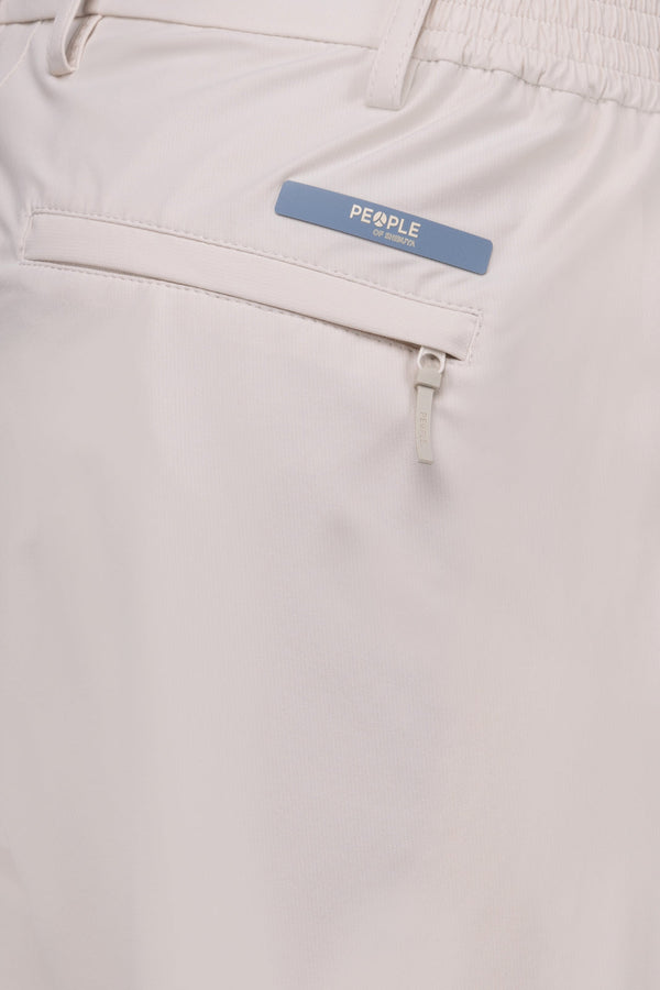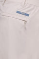 Cintura in vita con fianchi elasticizzati e passanti e bottone a gancio personalizzato.