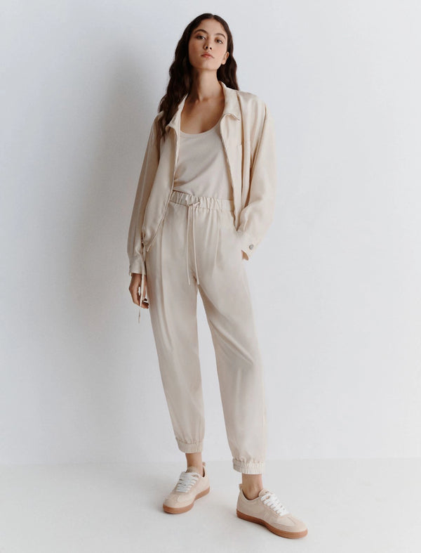 L'eleganza rilassata del jogger trova nuova energia nella seta habotai lavata. Leggera e morbida al tatto, ti accompagna dall'ufficio allo shopping, in un susseguirsi di look sempre perfetti.